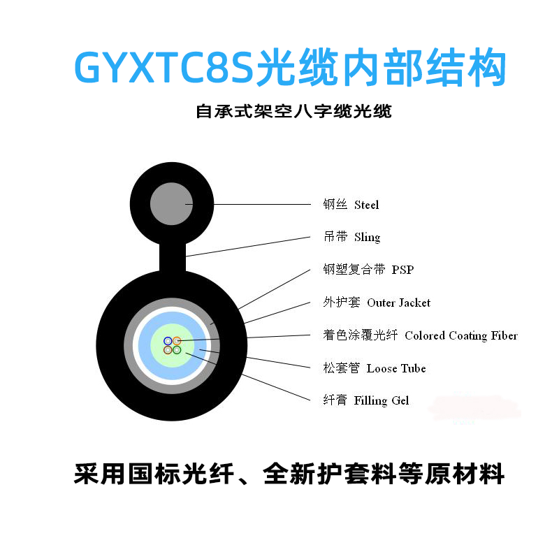 •       鋼絞線/FRP:位于光纜上部(8字上半部分),提供抗拉強(qiáng)度。