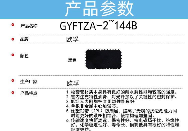 GYFTZA光纜,層絞式結(jié)構,室外用、油膏填充、鋁帶縱包低煙無鹵外護套。采用層絞式結(jié)構,光纖套入由高模量聚酯材料制成的松套管中,(光纖采用烽火及長飛的A級光纖保證傳輸性能優(yōu)良結(jié)構性能穩(wěn)定),套管內(nèi)填充防水松套管化合物。松套管(和填充繩)圍繞非金屬中心加強芯纜芯填充物(FRP)絞合成緊湊的纜芯,纜芯內(nèi)的縫隙充以