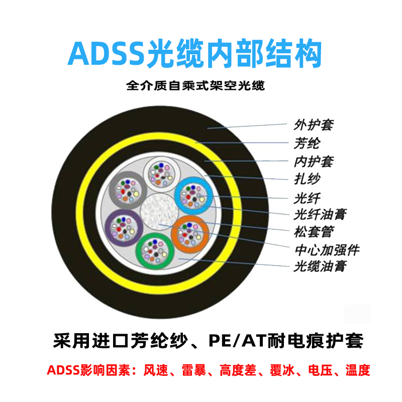 ADSS自承式光纜采用全非金屬材料構(gòu)成,這一特點(diǎn)帶來多重優(yōu)勢: